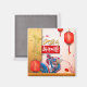 Belo dragão chinês em um telhado + lanterna com um antigo ideograma vermelho chinês nele + ouro "Ano do Dragão" (Escrita manual original) + deseja em chinês em um retângulo vermelho + ouro 2024. Design no ímã quadrado. Cartão de saudação, cartão de feriado e adesivo quadrado. Perfeito para o Ano Novo Chinês do Dragão 2024. — "O Dragão (Chinês simplificado: 龙; Chinês tradicional: 龍) é um dos ciclos de 12 anos de animais que aparecem no zodíaco chinês relacionado ao calendário chinês. O Ano do Dragão está associado ao símbolo da Sucursal Terrestre 辰, pronunciado chen. Foi proposto por um pesquisador acadêmico que o personagem do Ramo Terrestre pode ter sido associado a escorpiões, podendo ter simbolizado a estrela Antares." Pode dizer-se que o nascer pessoas dentro destes intervalos de datas foi nascer no "Ano do Dragão", ostentando igualmente o seguinte sinal elementar: 22 de Janeiro de 1928 - 9 de fevereiro de 1929 = Earth Dragon, 8 de fevereiro de 1940 - 26 de Janeiro de 1941 = Metal Dragon, 27 de Janeiro de 1 3 de fevereiro de 1953 = Dragão de Água, 13 de fevereiro de 1964 - 1 de fevereiro de 1965 = Dragão de Madeira, 31 de Janeiro de 1976 - 17 de fevereiro de 1977 = Dragão de Fogo, 17 de fevereiro de 1988 - 5 de fevereiro de 19989 = Dragão da Terra, 5 000 - 23 de Janeiro de 2001 = Metal Dragon, 23 de janeiro de 2012 - 9 de fevereiro de 2013 = Water Dragon, 10 de fevereiro de 2024 - 28 de janeiro de 2025 = Wood Dragon, 28 de janeiro de 2036 - 14 Wikipedia: Dragão de Fogo