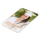 Íman de anúncio de graduação moderno com uma foto vertical personalizada com sobreposição de texto. A palavra "Formando" aparece na escrita laranja queimada, com o nome do formando, a escola e o ano de graduação abaixo na fonte sans serif. Substitua facilmente a imagem de amostra pela foto do seu próprio formando. Uma tela de gradiente branco ajuda a garantir os pop de texto. Ideal para segundo grau ou formandos.
