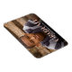 Este ímã contemporâneo de lançamento de graduação apresenta a tipografia moderna e uma foto de cheio. A palavra "Formando" é escrita na parte inferior da fotografia em letras maiúsculas de cor azul-rosa. O nome do formando está abaixo, e o ano de graduação está posicionado lateralmente dentro o D em "Formando". O design de tipografia cobre uma foto horizontal de cheio do novo formando.