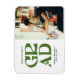 Este anúncio de graduação apresenta uma tipografia ousada e moderna com uma retro-edge e uma foto de solteiro.