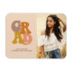 Este divertido ímã de lançamento de graduação tem uma tomada moderna na design da vintage dos anos 70. A design inclui 70 caracteres à esquerda e uma foto vertical à direita. A tipografia retrorreflectora diz "Formando" em tons de laranja ferrugem, ouro de colheita, púrpura esmaecida e cor-de-rosa rosa poeirento contra fundo de pêssego claro. O nome do formando e a escola são escritos abaixo da tipografia, e o ano de graduação é escrito através do D em "Formando".