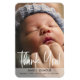 Personalize facilmente este obrigado, seu cartão de anúncio e anuncia o nascimento do seu bebê ao mesmo tempo. Personalize com sua própria foto, nascimento de bebê, nome, estatísticas. Uma bela carta de manutenção e pensamento, a moderna Tipografia do Script design para a palavra "obrigado você" na frente. Cartão de formato vertical.