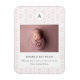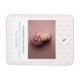 Anúncio de nascimento moderno, simples e elegante em cor-de-rosa para uma menina, com um padrão de filigrana para uma sugestão de princesas:) Personalize facilmente este cartão de ímã de anúncio de nascimento fofo com a sua própria fotografia e todos os detalhes. Visite a loja para ver a linha de cheio dos produtos disponíveis. Kate Eden Art.