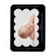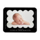 Ímã de anúncio de nascimento moderno com a foto do seu bebê aninhada dentro de um quadro preto com recorte. Personalize o ímã de anúncio de nascimento preto adicionando o nome do seu bebê e informações adicionais em letras brancas.