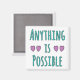 A charming and uplifting design featuring the inspirational phrase "Anything is Possible" in soft light teal, accented with two sets of delicate pink hearts to spread positivity and love.