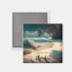 Água turquesa e palmeiras num ímã branco de arte praiana. Citação: "Apaixonado pelo mar."