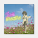 Design divertida e inspiradora mistura uma variedade de elementos : um recorte de fotos pintadas de um anjo/fada sobre o fundo de céus azuis e flores com néon rosa e amarelo "respirar apenas"