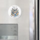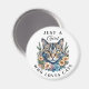 Gato cinza listrado em aguarela fofo cercado por flores rosa e azuis.