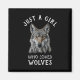 Uma bela imagem de lobo com texto que diz: "Apenas uma menina que ama lobos"