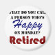 Aposentado, não é um cuidado no mundo. Sem despertadores, chefes, política, comutação, pessoas estúpidas, blues de segunda-feira. Dorme, faça o que quiser, quando quiser, onde quiser. Relaxe, retire-se em estilo. Acalme-se!