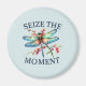 Este ímã apresenta uma libélula colorida e a frase "Agarre o momento", fazer-o como um presente perfeito para amigos, familiares ou para você.
