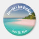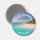 Birthday save the date / keepsake magnet with a beautiful photograph. A scenic tropical beach with aquamarine water and a white sandy beach with a lush forest in the back.