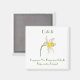 Uma flor botânica amarela e branca do narciso. Cor de água tradicional (originalmente pintada com tinta no papel). É brilhante iluminado por sol e alegre. Esta é uma vista lateral. O nome e o significado da flor estão em verde para combinar com o caule. Felicidade, Novos Começos, Renascimento, Rejuvenescimento, Respeito. Uma das primeiras flores a lançar na primavera. Também a flor para o nascer em março.