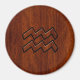 Um sinal de Aquarius zodiac num fundo de impressão de design de textura de grãos de madeira de mogno. Um design moderno de racy para uma ideia de presente de aniversário personalizada de excelente. Designs de bordados estão disponíveis em uma seleção de opções populares de cor. Use o link "Perguntar a este Designer" para entrar em contato conosco com suas solicitações especiais de design ou para obter assistência com suas necessidades de personalização.