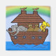 Íman colorido do arco de Noah com animais e arco-íris. Um desenho simples da Arca com ursos, girafas, aves e elefantes, assim como o arco-íris para contar ao Noah, seu Convênio Arco e Deuses.