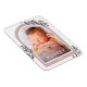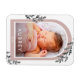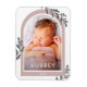 A design simples e moderna apresenta ramos botânicos cinzas com um desenho fotográfico rosa feminino e nome em bonito escrita. O ano é simplesmente indicado na tipografia branca. Perfeito para comemorar um bebê recém-nascido, ou exibir uma foto especial.