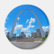 Foto do arco de entrada na Rua Louis, Missouri de um barco no rio Mississippi.