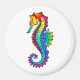 Articulação artificial, brilhante, arco-íris, cavalo de mar poligonal sobre fundo branco. Tatuagem brilhante.