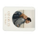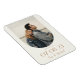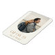 Ímã moderno de salvar a data do casamento com design elegante e sofisticado e estilo boho minimalista com sua foto em uma moldura de arco.