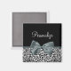 Personalize acrescentando o nome de qualquer garota feminina a este sofisticado ímã de impressão leopardo preto e branco com uma fita elegante amarrada em um arco feminino clássico. Este design de impressão na moda é uma imagem impressa plana e não contém fita real.