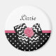 Traga sua personalidade feminina com este ímã giro preto e branco com um arco chevron preto e branco, e um rosa de fita rosa-chic. Você pode personalizar este retrato rosa e negro encontra a design moderna adicionando o nome da sua adolescente. Imagem impressa plana, NÃO fita e arco de rosetas reais.
