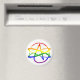 Um símbolo ateu feito de um arco-íris. Você não é uma abominação, você é humano.