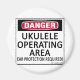 Perigo, Área Operacional Ukulele! Proteção auricular Necessária! Este é um aviso justo para qualquer pessoa em torno de instrumentos musicais. Veja todas as nossas designs musicais em copos, canecas, camisetas, camisas, chapéus e outros presentes e roupas.