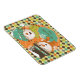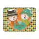 O nosso ímã flexível Argyle Snowmen Holiday personalizou um casal de boné de neve em cima, chapéu de inverno, lenço listrado e nariz de cenoura em cor de laranja, lacre, mostarda, castanho e creme padrão de estilo argyle, pequenas bolinhas em laranja com flocos de neve de branco, e um banner teal que você pode facilmente personalizar com um nome ou outro texto.