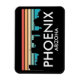 Belo e na moda Phoenix Arizona Photo Magnet mostrando um esquema de cores retrógrado do pôr do sol no horizonte da cidade americana com seus incríveis marcos e edifícios. Faz uma lembrança excelente e um presente viagem.