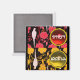 ÍMAN ART DECO PARROTS, VERMELHAS FLORES AMARELAS SUJAS