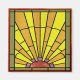 Um ímã quadrado com uma imagem de vidro manchado pela Art Deco de um sol amarelo-alaranjado iluminado no dia com raios de luz amarelos e laranja. Veja toda a coleção de Magnet Roaring 20s em TOUCHES ESPECIAIS| Seção Favoritos para festas.