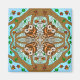 A arte desenhada à mão Coruja Mandala azul e marrom, Folhas de outono e galhos de árvores com céu azul.