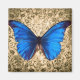 Design de uma bela, grande, borboleta azul-monarca da meia-noite contra um fundo de cor damasco vintage. Esta design de arte mostra a cor vibrante natural da borboleta e tem a sensação retrorativa de vintagem.