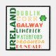 O gráfico de estilo de metrô lista as cidades mais altas da Irlanda em várias fontes e a cor do tema irlandês