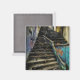 O spray de pintura de grafite de Arte Urbana em escadas vazias e delíguas e um antigo prédio abandonado.