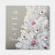 Um belo ditado ao lado de uma bonito árvore de Natal branca, todo decorado.