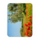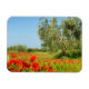 Íman fotográfico retangular com uma oliveira antiga num cheio de papoila vibrante vermelho num campo de papoila numa paisagem na Toscana, Itália.