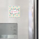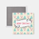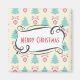 Um ímã com um padrão de natal festivo sobre um fundo colorido creme. Ilustrações de árvores de natal de cor pastel, azul-esverdeado, e bolhas e arcos cor-de-rosa pastel em padrão repetitivo. No centro, uma bela moldura branca, num estilo desenhado à mão, que diz Feliz Natal no centro. Tem um belo talento retrô.