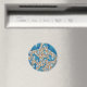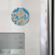Um design de árvore abstrato de arte contra um céu azul brilhante.