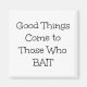 O ímã "As Coisas Boas Vêm para Aqueles que Baitam" é perfeito para os pescadores em sua vida adicionarem à cozinha ou ao escritório. Fundo branco com letras negras.