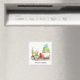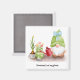 O gnomo bonito está esportando um chapéu verde com um arco azul e regando um lindo jardim de tigelas de flores com uma lata vermelha brilhante de água. O pequeno gnomo barato diz, às vezes eu rego minhas plantas. Ou você pode personalizá-lo para dizer exatamente o que você quer.