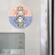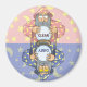 Feiticeiros com capas azuis e cor-de-rosa olhando para bolas de magia de cristal. Fundo com lua e estrelas. Campos de texto personalizados para placas Clean and Diirty.