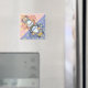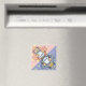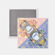 Feiticeiros com capas azuis e cor-de-rosa olhando para bolas mágicas de cristal. Fundo com lua e estrelas. Campos de texto personalizados para placas de limpeza e sujidade.