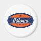 Design de sinalização oval com os bairros de Nova Iorque. Cor oficial laranja e azul da NYC. O bairro Astoria de Queens. Apresentando os bairros do Queens de: Astoria, Auburndale, Bayside, Corona, Ditmars, Elmhurst, Floral Park, Flushing, Forest Colinas, Hollis, Jackson Heights, Jamaica, Long Island City, Midvillage, Ozone Park, Rego Hill, Rockaway, Woodhaven