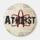 símbolo ateu sobre um antigo pano de fundo castanho vestido. Mostre ao mundo que você não tem vergonha de ser ateu.