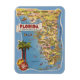 Um belo mapa do Estado da Flórida mostrando suas maravilhosas atrações, cidades especiais e cidades. É colorido, tropical e faz um presente ou lembrança divertidos.