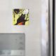 Two black cats are depicted in a whimsical composition, perched among branches with colourful fruits. One cat observes the other with a humorous thought.
