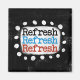 Um design tipográfico bonito que diz "Atualizar Atualização". É texto preto, vermelho e azul em um retângulo branco com pontos brancos engraçados e brincalhões ao seu redor, tudo em um fundo preto.
