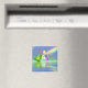 Um imã de aniversário de 3 de agosto com coração peridot, balões e arco-íris.