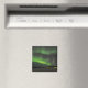 Fotografia de Souvenir com raios verdes de aurora borealis (nortes) no céu noturno sobre um lago congelado na Lapónia.